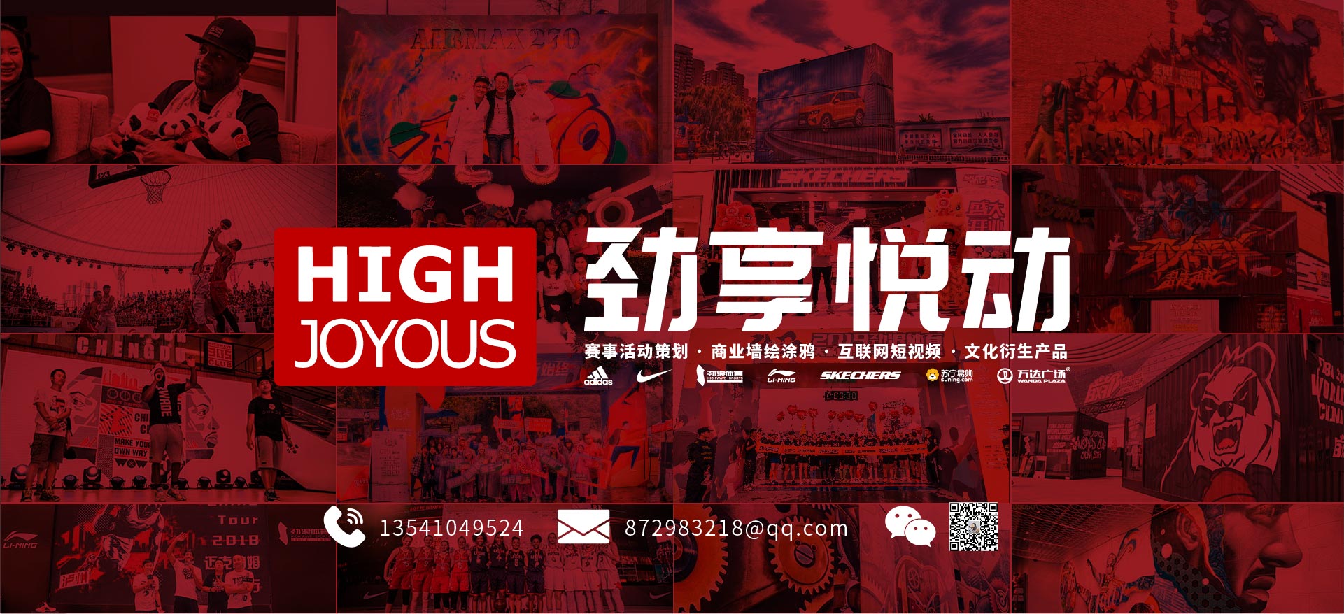 四川勁享悅動文化傳播有限公司是勁浪品牌全資控股的文化傳播公司,擁有運動DNA,經過數(shù)十年的摸索沉淀,型構出橫跨全國的業(yè)務版圖:“活動策劃執(zhí)行、賽事執(zhí)行推廣、互聯(lián)網視頻制作、商業(yè)涂鴉創(chuàng)意定制”四大主營項目。以創(chuàng)意、設計、內容打動消費者,現(xiàn)擁有完善的策略推廣及視覺創(chuàng)意團隊,規(guī)范成熟的項目管控機制,提供從策劃、設計到執(zhí)行環(huán)環(huán)相扣的全方位服務,力求帶給客戶專業(yè)、前沿、實效...
